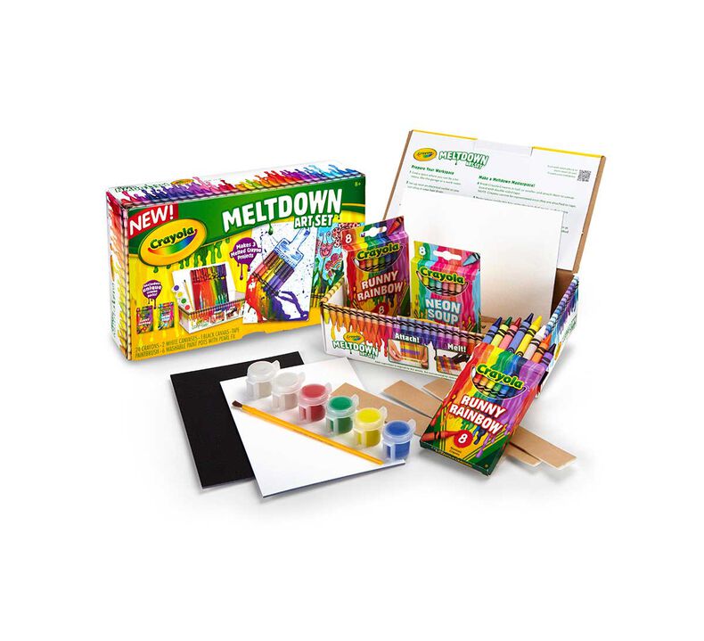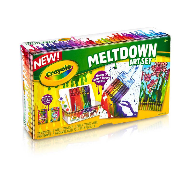 Incorporate newspaper and scrapbooking elements for a multimedia collage. The Meltdown Art Set Includes 2 White Canvas Boards 1 Black Canvas Board 24 Crayons 6-ct.